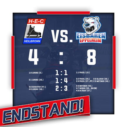 Es wurde die erwartet schwere Aufgabe, beim Tabellennachbarn aus Heilbronn zu bestehen. Nach anfänglichen Schwierigkeiten und zweimaligem Rückstand drehten die Eisbären Ende des zweiten Drittels die Partie und gaben die Führung bis zum Schluss nicht mehr her. Nach den Treffern von Artemij Frizel (3), Marius Metzner (2), Maurice Ullrich, Max Weber und Moritz de Raaf stand am Ende ein klareres 8:4 auf der Anzeigetafel, als es der Spielverlauf vermuten hätte lassen.