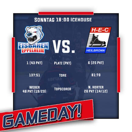 Als Tabellenführer der Landesliga empfangen die Eisbären das Überraschungsteam aus Heilbronn, die sich nach einem starken Saisonstart die Führung der inoffiziellen 1b-Wertung gesichert haben. Dabei profitiert der Liga-Neuling vor allem von seiner starken Auswärtsbilanz, bei der man erst 2 mal als Verlierer das Eis verlassen musste. Doch die Eisbären werden hoch motiviert in das Spiel gehen, denn neben der Verteidigung der Tabellenführung kann man sich bei einem Sieg bereits 4 Spieltage vor dem Ende den Vize-Meister-Titel sichern.